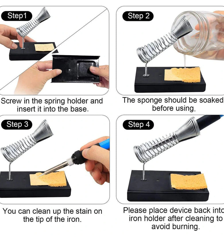 1. Soldering Iron Support Station: Standard dual spring soldering iron holder with sponge is a very useful tool when the soldering iron work.It has a secure base and it is more safer than any other thin soldering stand.The maximum extent to avoid the user was burned and damaged.