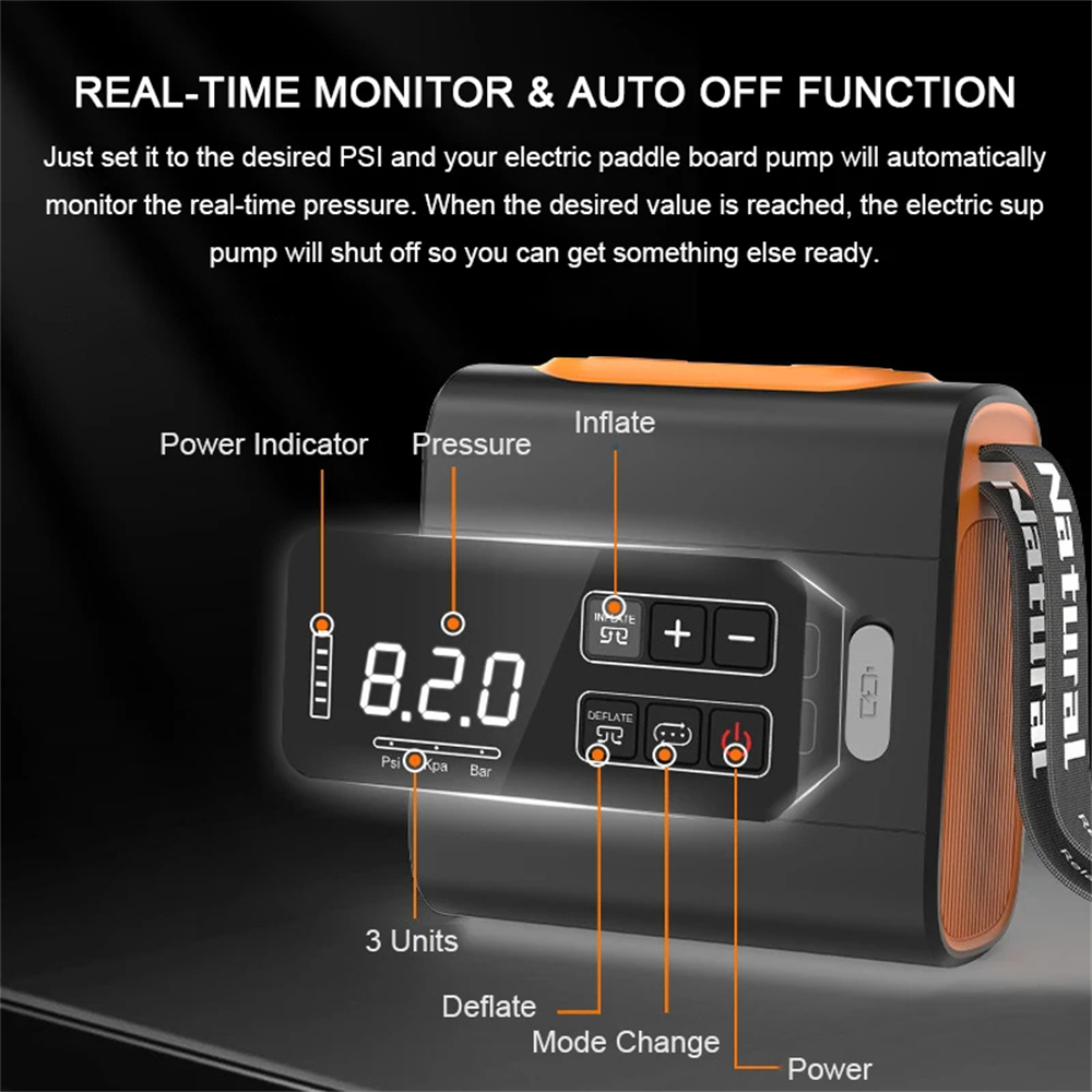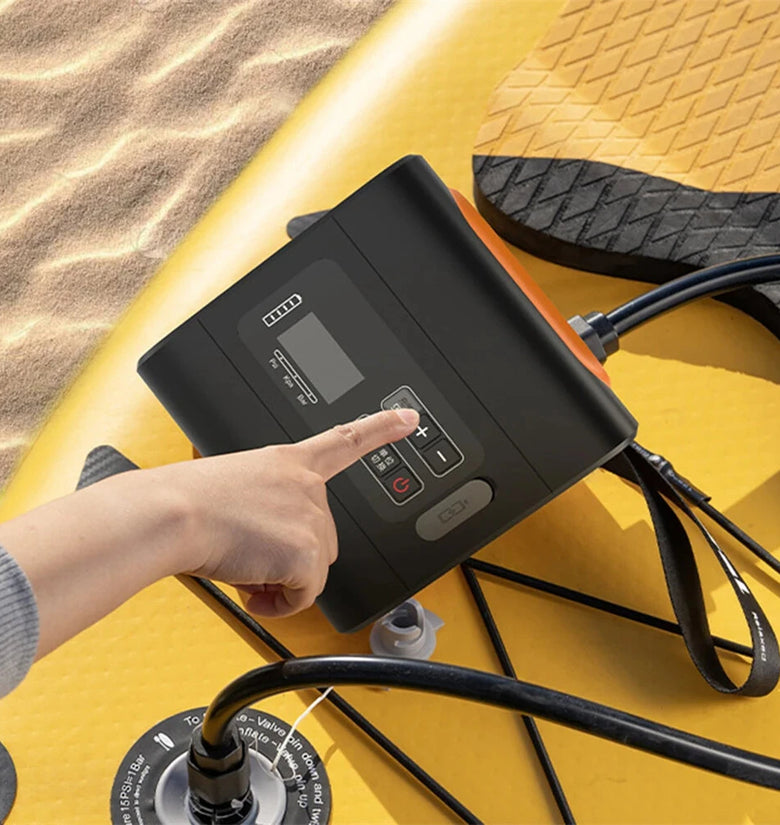 • 22PSI Smart Paddle Board Air Pump 5000mAh Rechargeable Battery-Powered for Inflatable Paddle Boards Auto-Off High Pressure Intelligent