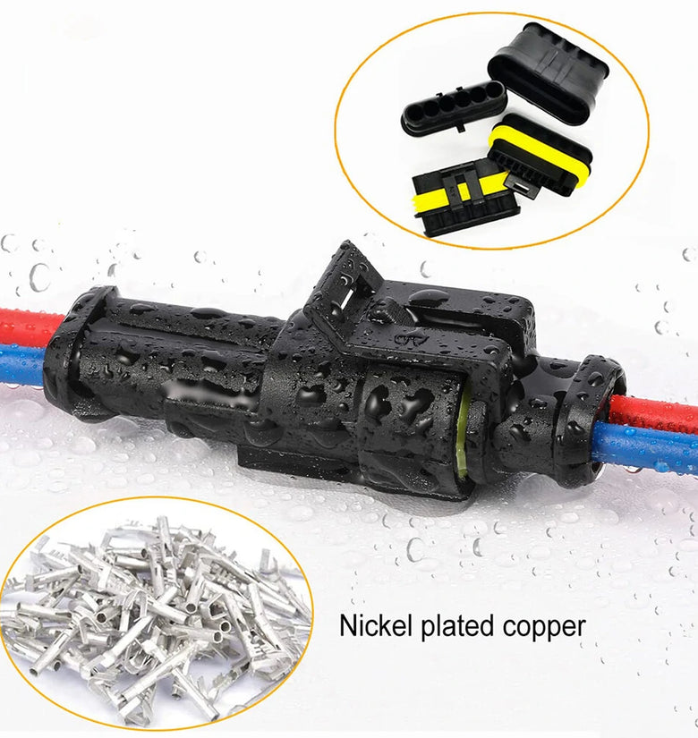 【Excellent Performance of Automotive Wire Connectors 2 pin】The automotive connectors 2 pin use high-precision copper plating process to improve conductivity, easy to install under soldering and crimping, reliable safe connection, no loose, and lightweight. Weather-pack connectors 2 pin are perfect automotive replacement ignition plug connectors.