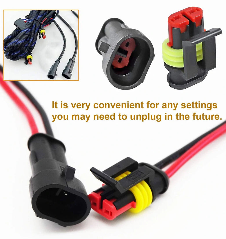 【Widely Applications of Pin Connectors Kit】Wire connectors automotive are great for various 12v connectors 2 pin of motorcycle, truck, marine, jet ski, scooter, car, and boat etc. Believe that our quick disconnect wire connectors 2 pin can give you a great help.