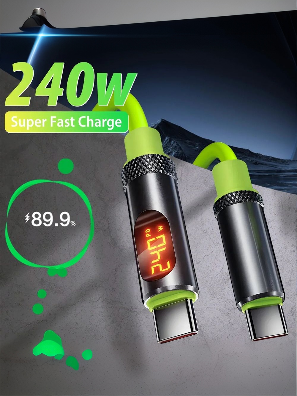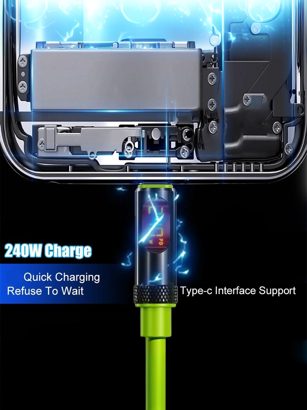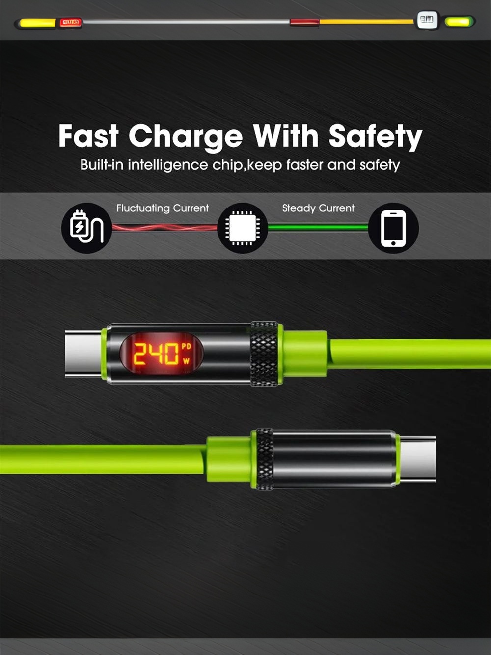 1.[Real-time power display] : Our 240W Data Display Fast charging cable is uniquely designed to display real-time charging power, allowing you to monitor the charging process and ensure efficient energy transfer.