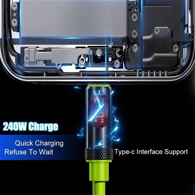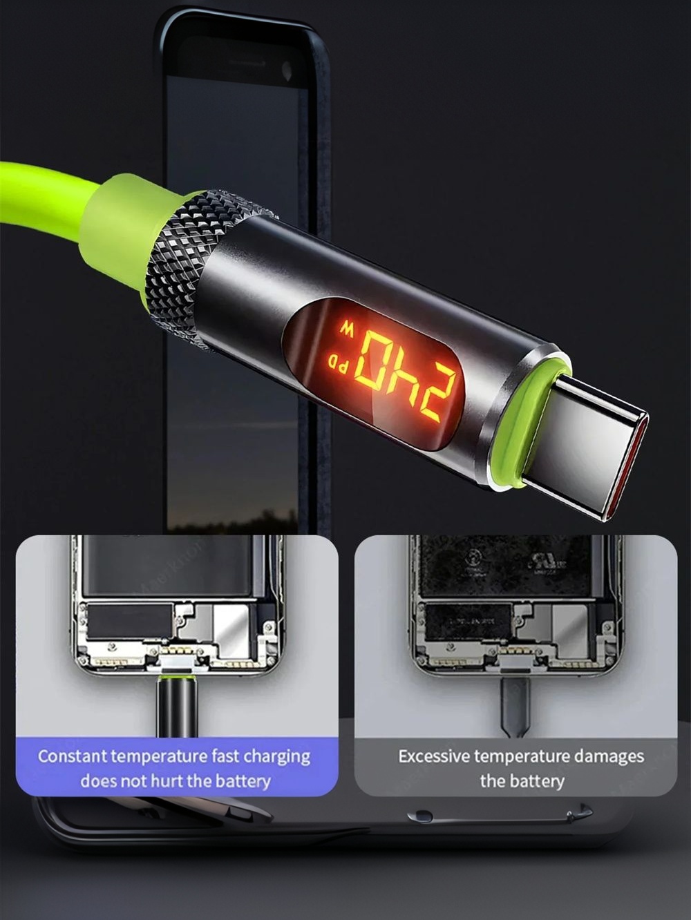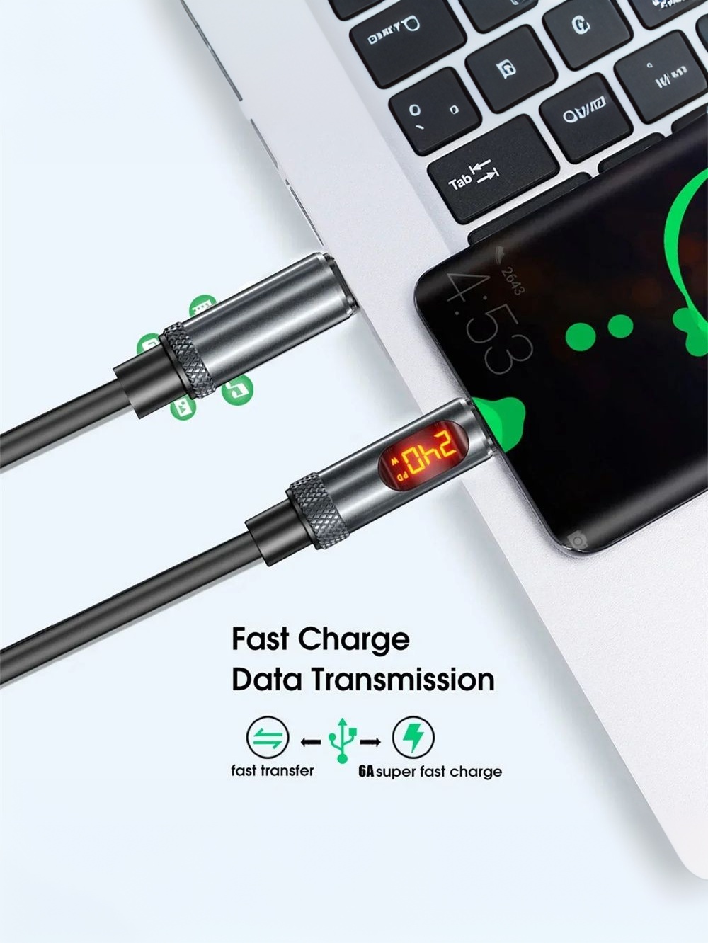 1.[Real-time power display] : Our 240W Data Display Fast charging cable is uniquely designed to display real-time charging power, allowing you to monitor the charging process and ensure efficient energy transfer.