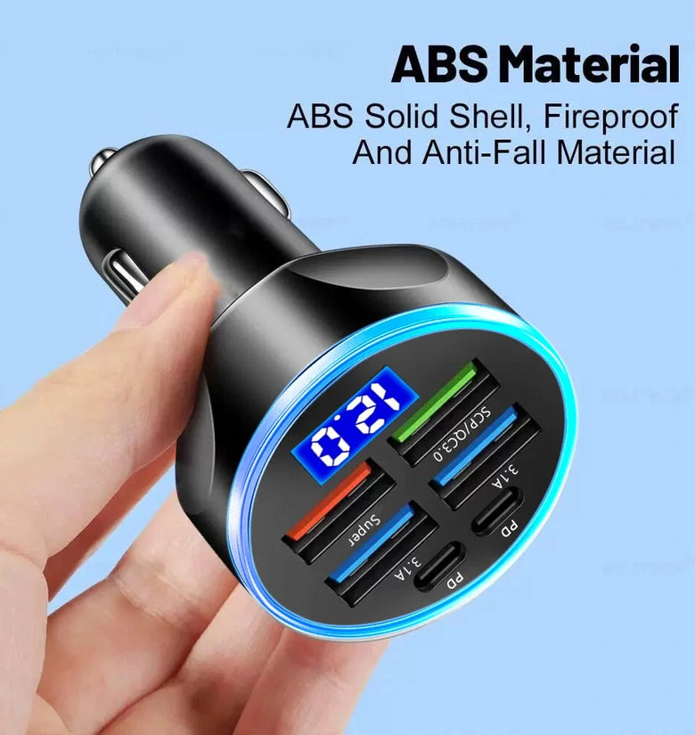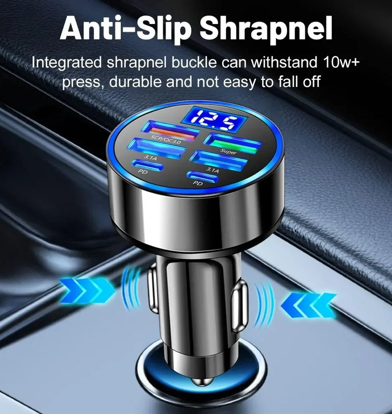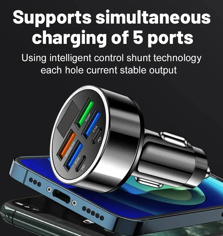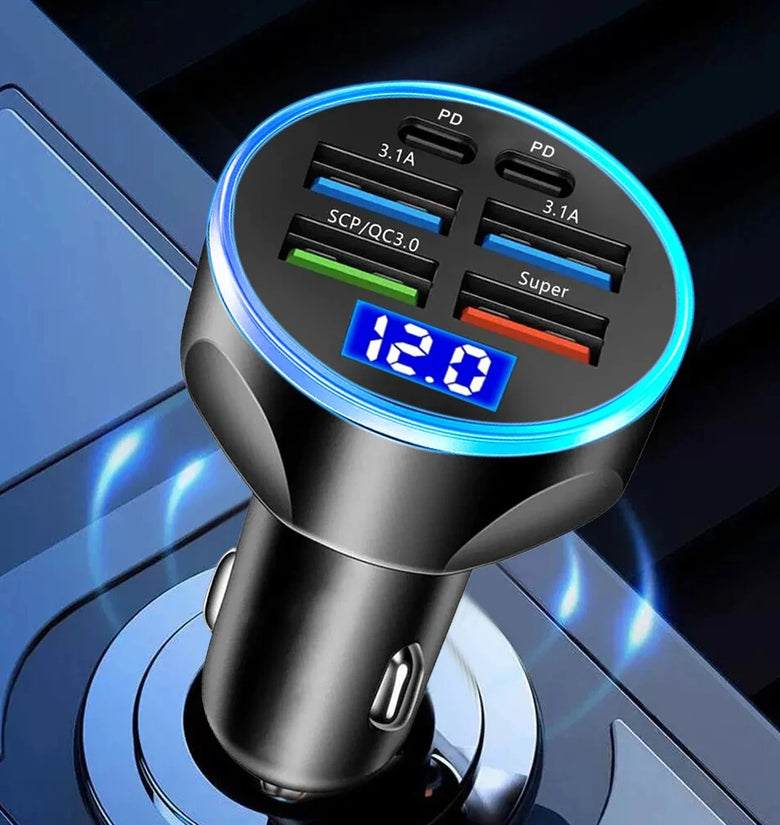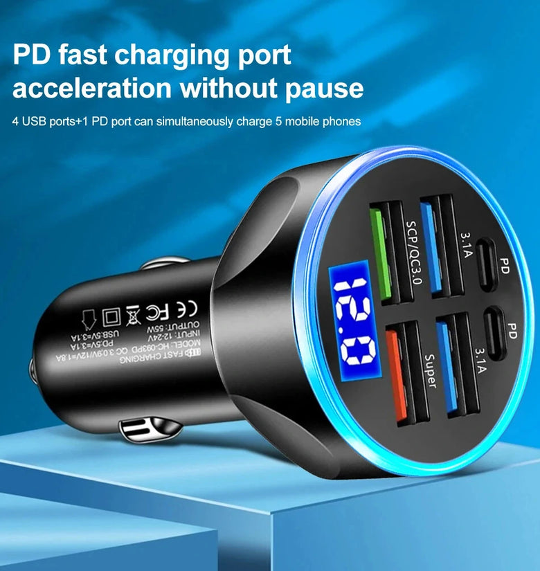 • 250W PD Car Charger QC3.0 Fast Charge with Digital Display Plug Car Charger Socket Flash Charge Digital Display Car Charger