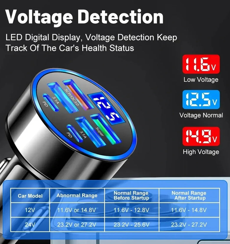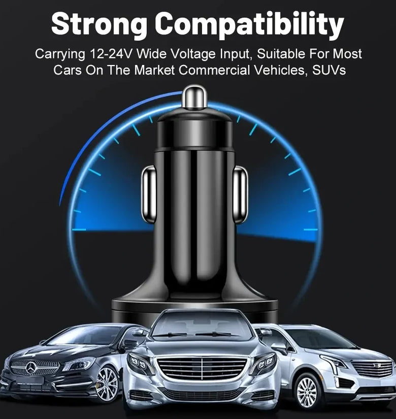 6. Metal elastic contact design, suitable for ciggie lighter ports of different sizes, can carry 12V/24V wide voltage input, and is compatible with most models on the market.