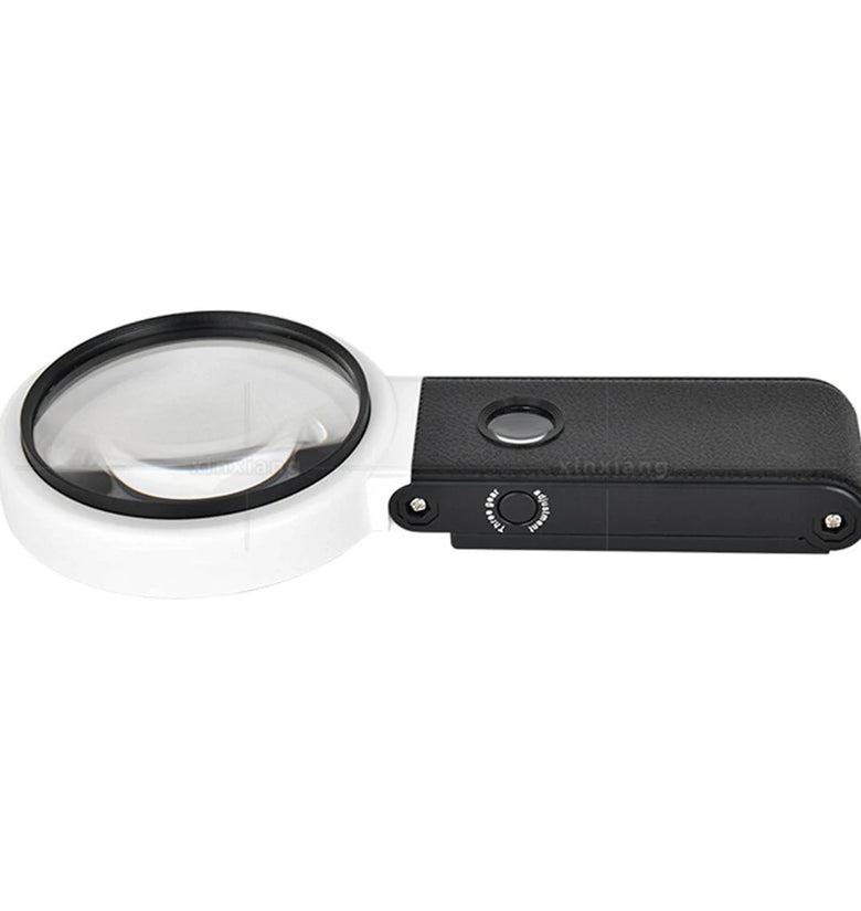 Cold and Warm Light Tricolor Lamp: This handheld magnifying glass features a cold and warm light tricolor lamp that is perfect for reading or examining intricate details. The different light settings provide optimal lighting for various environments and preferences.