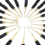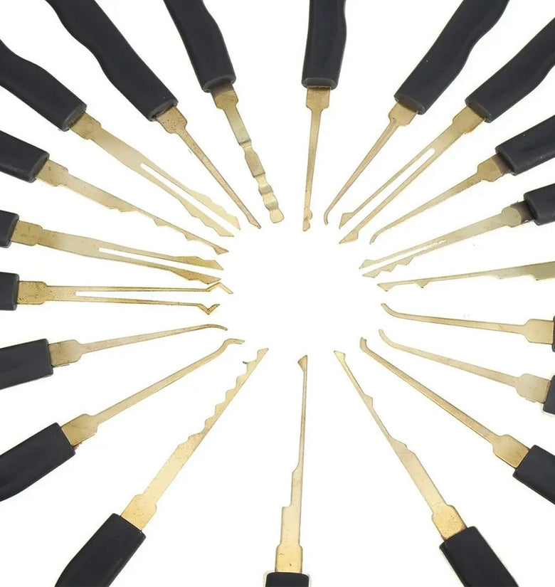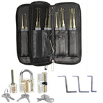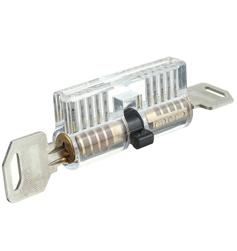 High-Quality Materials: Crafted from robust and reliable spring steel, these tools are designed to last. This set comes in a perfect smooth working condition with no loose parts or pins, ensuring that it can withstand regular use.Visual Aid: With the transparent padlocks, you can see all movements of the pins, providing a valuable visual aid for understanding lock mechanics. This allows for clear observation of pin movement when the key is inserted and removed.Easy-to-Use Tools: This set is equipped with a padlock shims and an automatic unlocking gun which are formed pieces of thin, stiff metal. These are specifically designed to exploit mechanical tolerances and imperfections in some locks' latching design for easy unlocking.Portable and Convenient: All items come included in an black PU bag for easy storage and transport. Whether at home, in the workshop, or on the go, this set is ready whenever you need it. Specifications:Quantity: 26 pcsMaterial: Spring SteelTransparent Padlocks: 3 pcsTableting Tools Thickness: 0.18mm