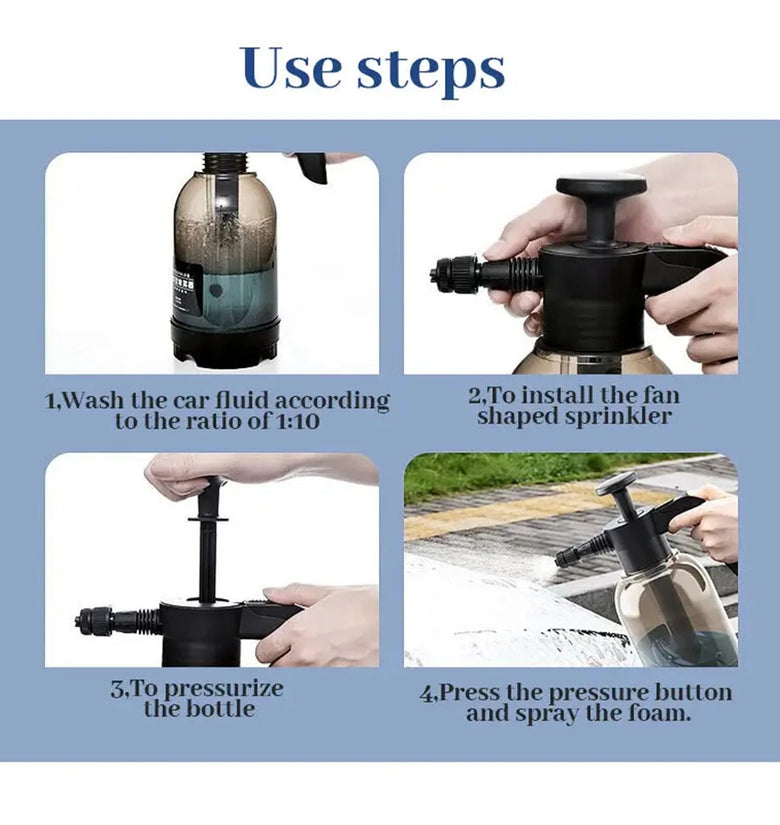 [High Capacity] With a 2L capacity, this foam sprayer allows for extensive use without frequent refills, making it ideal for car washing and garden watering.