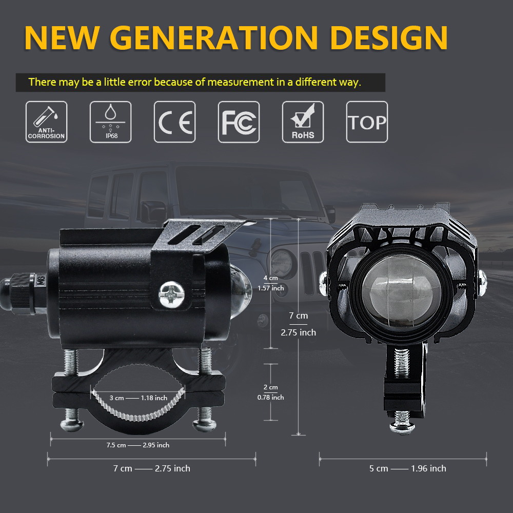 1. High Thermal Conductivity CNC Aluminum Material - The use of high thermal conductivity CNC aluminum material ensures that the motorcycle headlamp fog lamp is durable, sturdy and can withstand the toughest of weather conditions. This ensures that the product is long-lasting and provides great value for money.2. Wide Voltage Range - The motorcycle universal headlamp fog lamp has a wide voltage range of 9-80V, which means that it is compatible with a wide range of motorcycles. This makes it a versatile product that can be used by a large number of motorcycle riders.3. Multiple Lighting Modes - The headlamp fog lamp comes with multiple lighting modes like white light, yellow light, yellow light+white light, and strobe. This ensures that the rider can choose the lighting mode that is most suitable for their needs and the prevailing weather conditions.4. Effective Light Distance - The motorcycle headlamp fog lamp has an effective light distance of 200 meters, which ensures that the rider can see clearly even in low light conditions. This is a great safety feature that ensures that the rider is always aware of their surroundings and can avoid potential hazards on the road.5. Compact Size - The headlamp fog lamp has a compact size of 7cm/2.75in x 5cm/1.96in, which makes it easy to install and use. The compact size also ensures that the product does not take up too much space on the motorcycle, which is important for riders who value the aesthetics of their motorcycles.