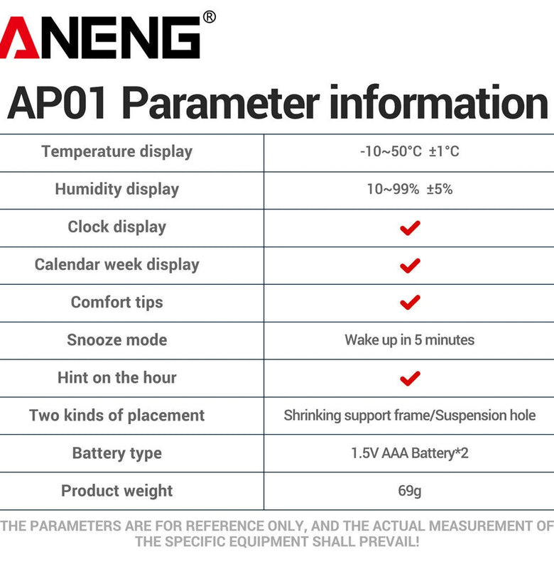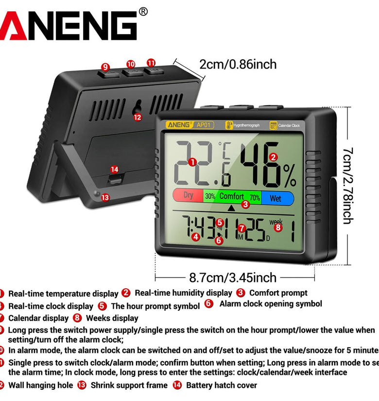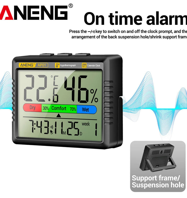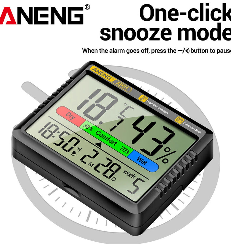 1 x ANENG AP01 Thermohygrometer Clock