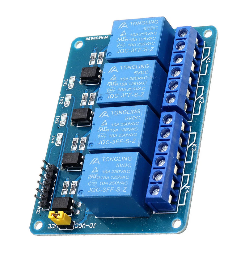 - Be able to control various appliances, and other equipments with large current - It can be controlled directly by Micro-controller ( , 8051, AVR, PIC, DSP, ARM, ARM, MSP430, TTL logic) - 5V 4-Channel Relay interface board, and each one needs 50-60mA Driver Current - Equiped with high-current relay, AC250V 10A , DC30V 10A - Indication LED’s for Relay output status