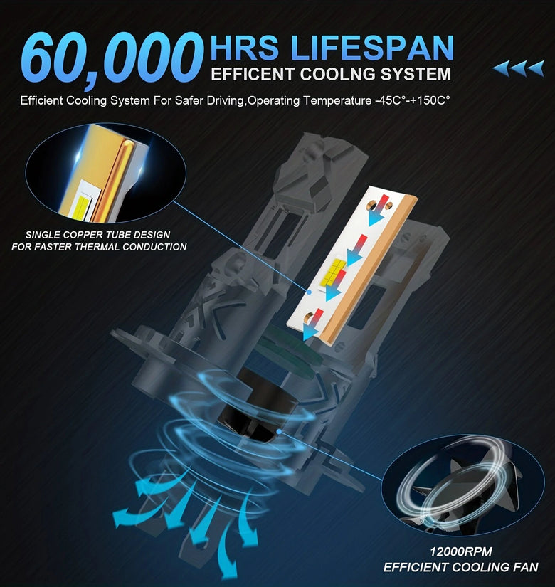 -- Emits 6000K cool white light, giving your car headlights a sleek, modern look.