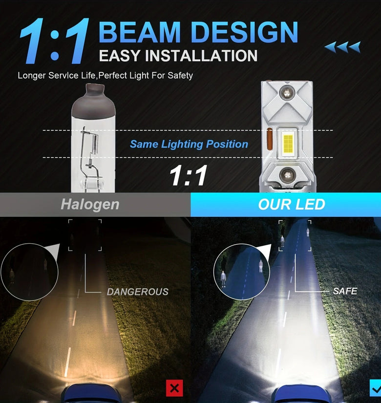 -- 1:1 mini size design makes it easy to install and blends perfectly into your car headlight housing without any modifications.
