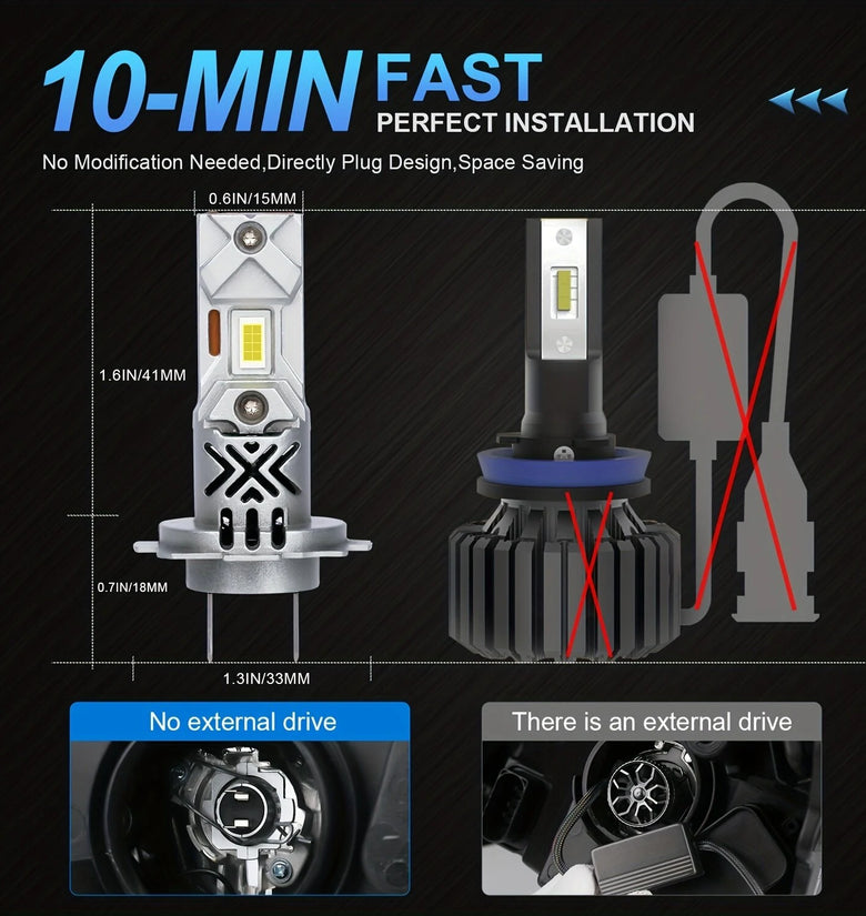 -- 2pcs H7 LED lights use wireless 30000LM CSP chips, which are 600% brighter than traditional halogen bulbs, ensuring a safer and clearer driving experience.