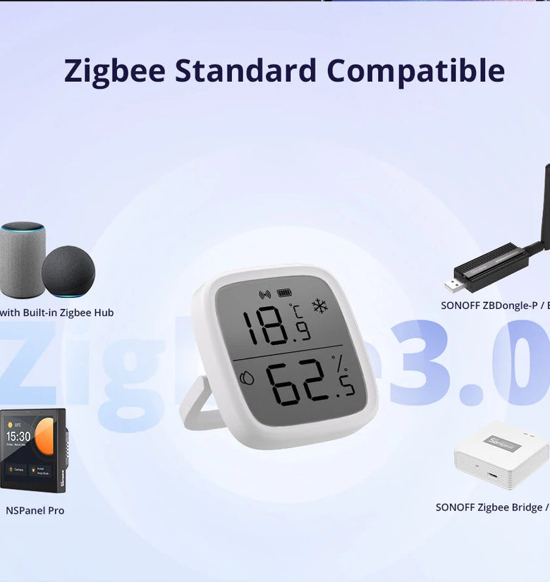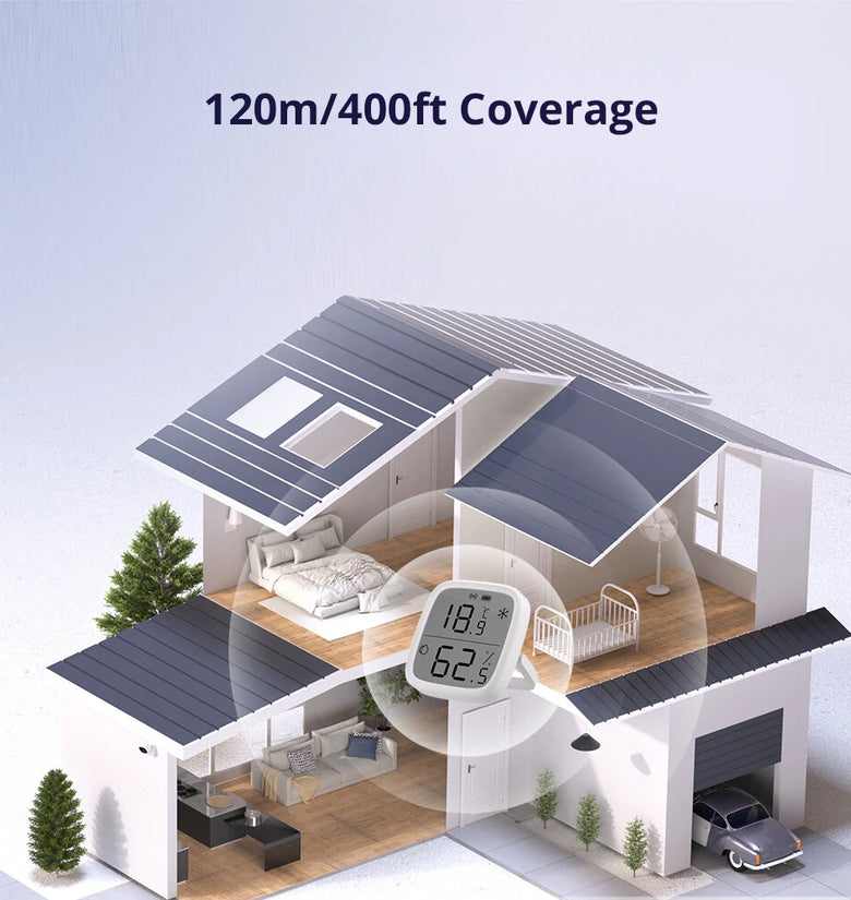 SNZB-02D sensor will monitor the temperature and humidity in real time on the APP remotely or display screen, with up to 120m/400ft coverate.