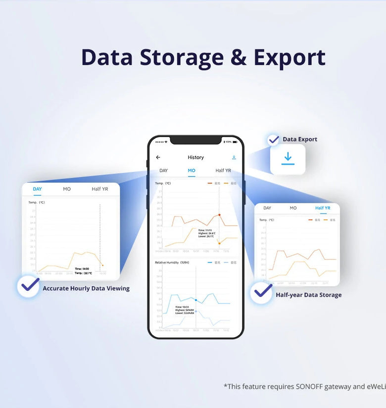 Up to half-year free cloud storage, and most accurate enough to view hourly data, you can also check the highest and lowest values at any hour or day and data can be exported as files.