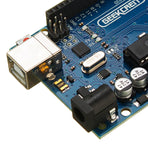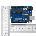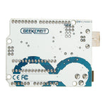 This is the new Tosduino Uno R3. In addition to all the features of the previous board, the Uno R3 now uses an ATmega16U2 instead of the ATmega8U2 chip. This allows for faster transfer rates, no drivers needed for Linux or Mac (inf file for Windows is needed), and the ability to have the Uno show up as a keyboard, mouse, joystick, etc.