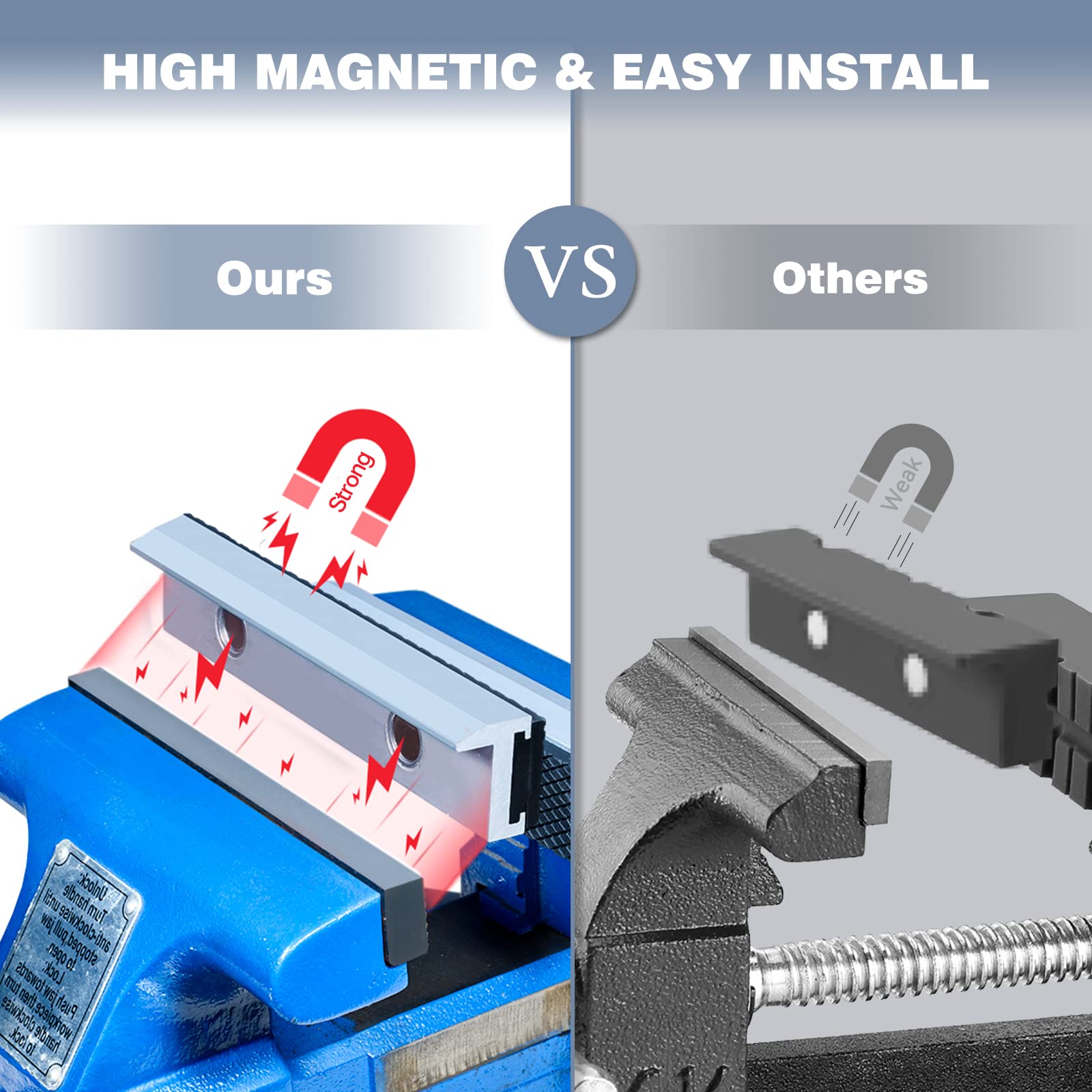 mso-bidi-font-family:'Times New Roman';font-size:10.5000pt;mso-font-kerning:1.0000pt;'>3. 【Powerful Magnets】Each vise jaw is equipped with a pair of N35 spec Neodymium rare earth magnets, each with a force rating of 2.4lbs. This empowers your vise jaws with superior grip and stability during operation, ensuring the items are securely held without any shifting.mso-bidi-font-family:'Times New Roman';font-size:10.5000pt;mso-font-kerning:1.0000pt;'>