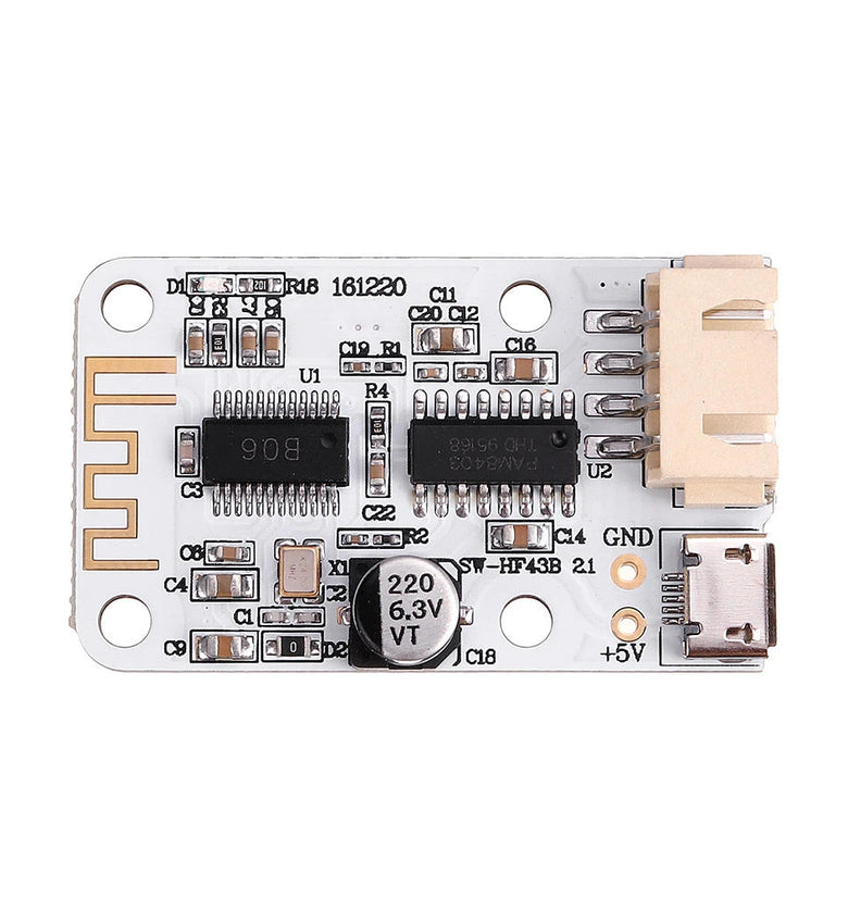 Product Name: bluetooth Receiver Amplifier Board Material: Electronic Components Color: White Size: 4x2.4cm(L x W) Mounting Hole:3.0mm Audio Input: bluetooth Audio Receiver Amplifier Output Power: 2x3W (Output connect to speakers, can not output for amplifier) Driving speaker impedance: 4~8ohm Power Supply Interface: Micro USB (Connect to computer USB port or battery bank USB, both can supply 5V) Output Interface: 2.54 Pitch, 4 Pins