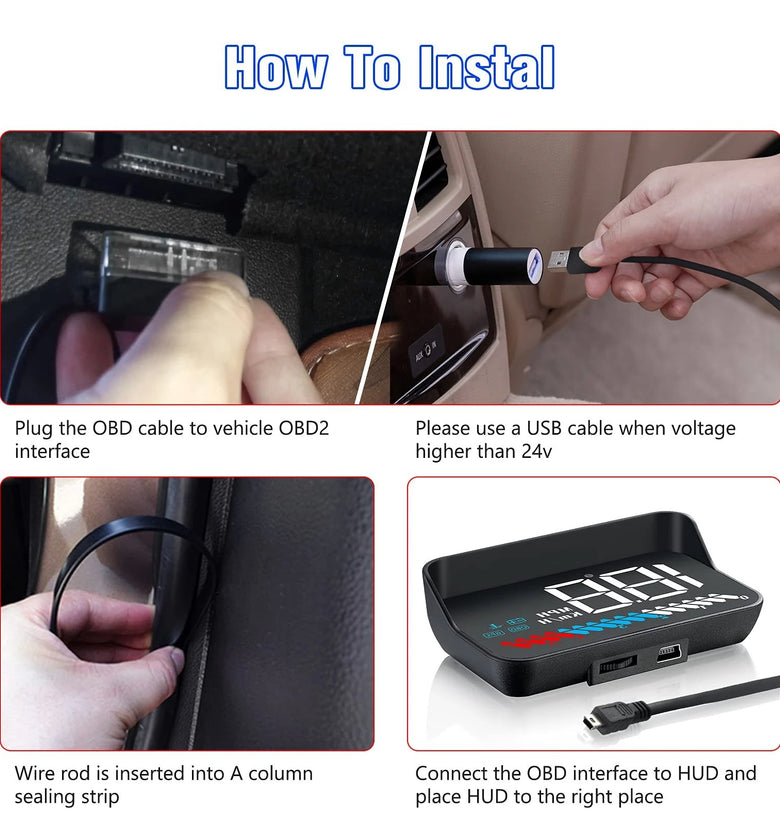Constructed from PC and ABS materials, the head-up display is resistant to high temperatures and severe cold, ensuring reliable performance in any weather condition, whether it’s a scorching summer or a freezing winter.
