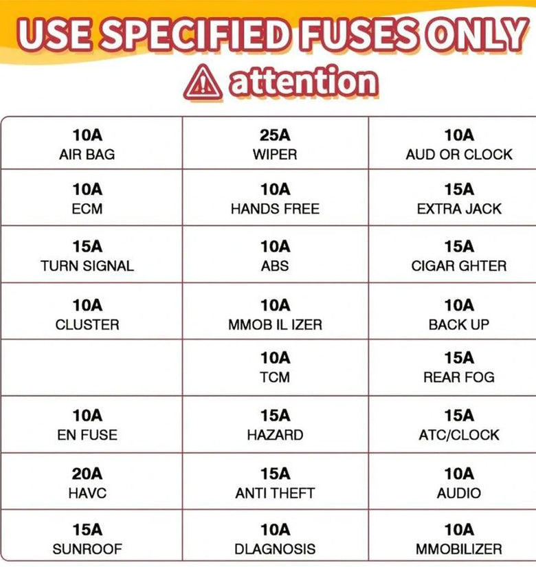 Medium fuses:6 x 2A6 x 3A12 x 5A10 x 7.5A28 x 10Ax24 x 15Ax22 x 20A10 x 25A14 x 30A6 x 35A12 x 40ASmall fuses6 x 2A6 x 3A12 x 5A10 x 7.5A28 x 10A24 x 15A22 x 20A10 x 25A14 x 30A6 x 35A12 x 40A