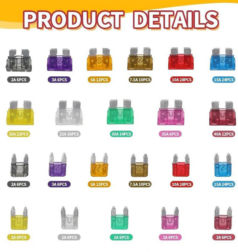 2. The invention is widely used in automobiles, trucks, VUS, VTT, UTV, RV camper, motorcycles, motorcycles, golf carts, ships, snow motorcycles and most general household DC applications, including radio, lighting, flickering, etc.3. Easy to use and store, each color of fuse is a specification, and the fuse is marked for easy identification; the car spare fuse kit is packaged in a durable plastic package to protect the car Mini fuse and provide easy transportation and organization.Fuse extractor, fuse extractor, fuse extractor, fuse extractor, fuse extractor, fuse extractorSpecifications:
