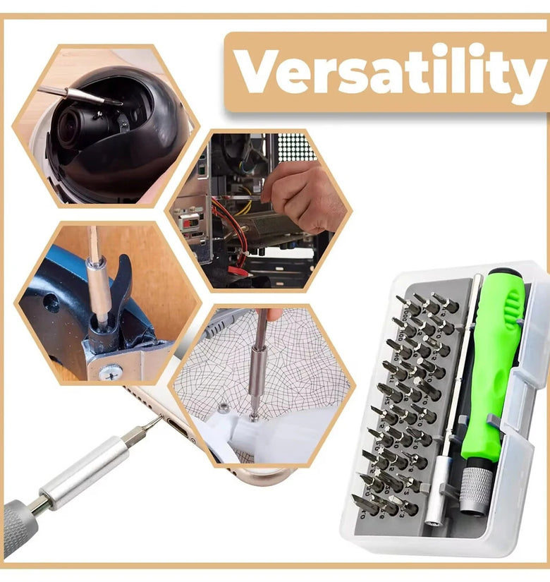 • 32-in-1 Precision Screwdriver Set Magnetic Bits Chrome Vanadium Steel Ideal for Phones Laptops Cameras Watches Convenient Storage for DIY Repairs