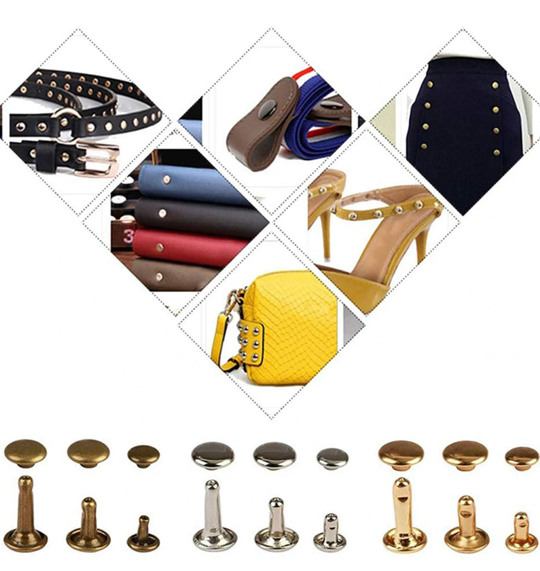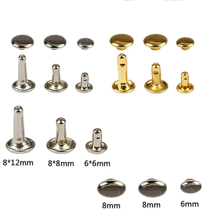 (Good quality) Rivets for leather and install tools are made of durable iron, Not easily deformed and break.The smooth surface of the rivets is plated in 4 colors, are fashionable and not easy to fade or rust.(Easy to use ) This leather rivets kit provides you with 4 auxiliary tools that are designed to hold the rivets to prevent movement and make the installation simpler, allowing the rivets to be flat after installation.(Widely use) Rivets for leather work are useful tools for DIY crafts or clothing such as wristband, hats, jeans, windbreakers, belts, shoes, down jackets, jackets and so on.(Practical storage box) Allows you to quickly find the size and color of the leather rivets double cap you need; easy to store to prevent loss of rivets; saves space and time.(Meet the demand) 360pcs of double cap rivets are available in 3 different sizes:6 mm x 6 mm ,8 mm x 8 mm ,8 mm x 12 mm ,for leather and crafts of various thicknesses; 3 different colors to meet the needs of different crafts.Specification: