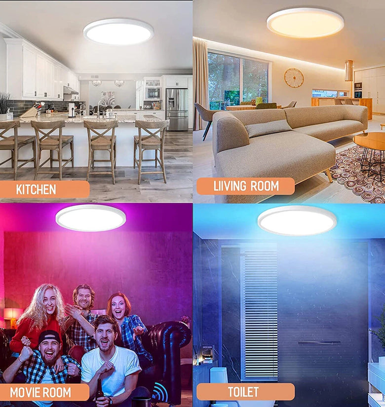 - Smart App & Voice Control: Operate the LED RGB ceiling light effortlessly with the smart app available on iOS and Android devices. Whether at home or away, you can turn the lights on/off, adjust brightness, and customize your lighting system. Voice control compatibility with Alexa and Google Assistant further enhances convenience, allowing hands-free operation.