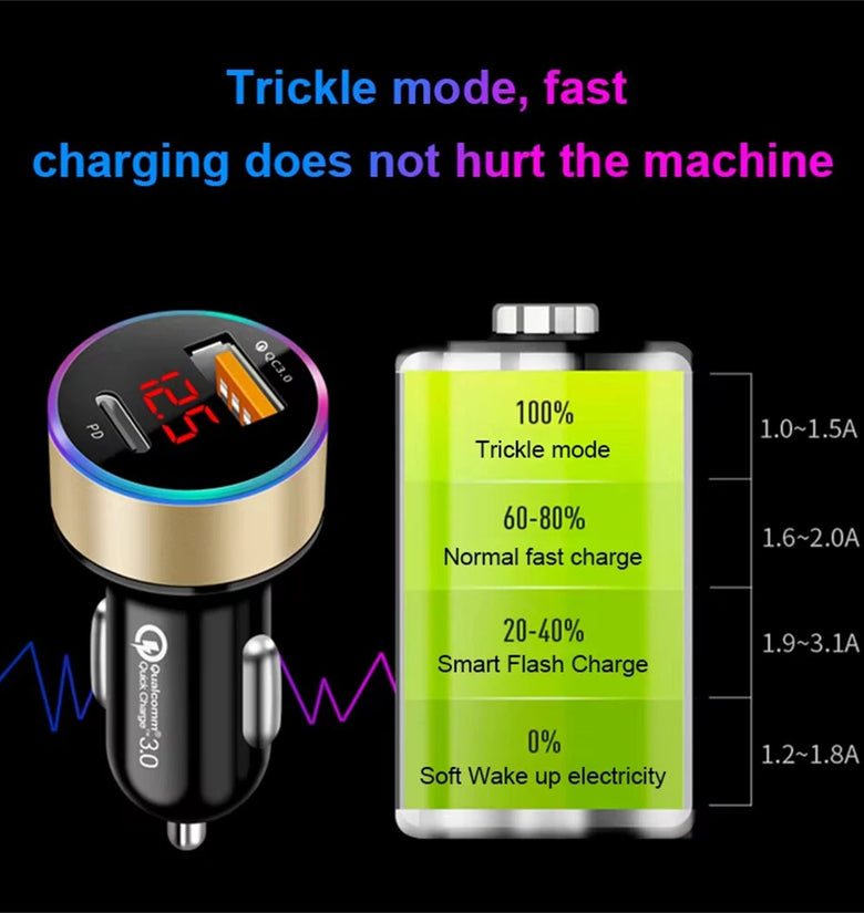 Dual-Channel Fast Charging: Experience Rapid Charging with The PD30W + QC3.0 18W Dual-channel Car Charger Delivering up to 38W of Power for Your Devices