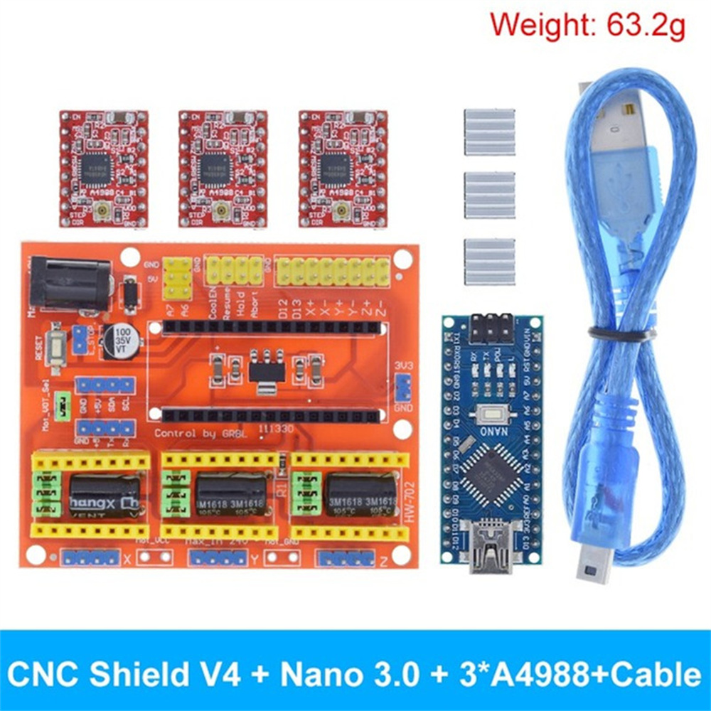 3D Printer Kit CNC Shield V3 V4 Engraving Machine Kit NANO Improved Version 4988 Driver