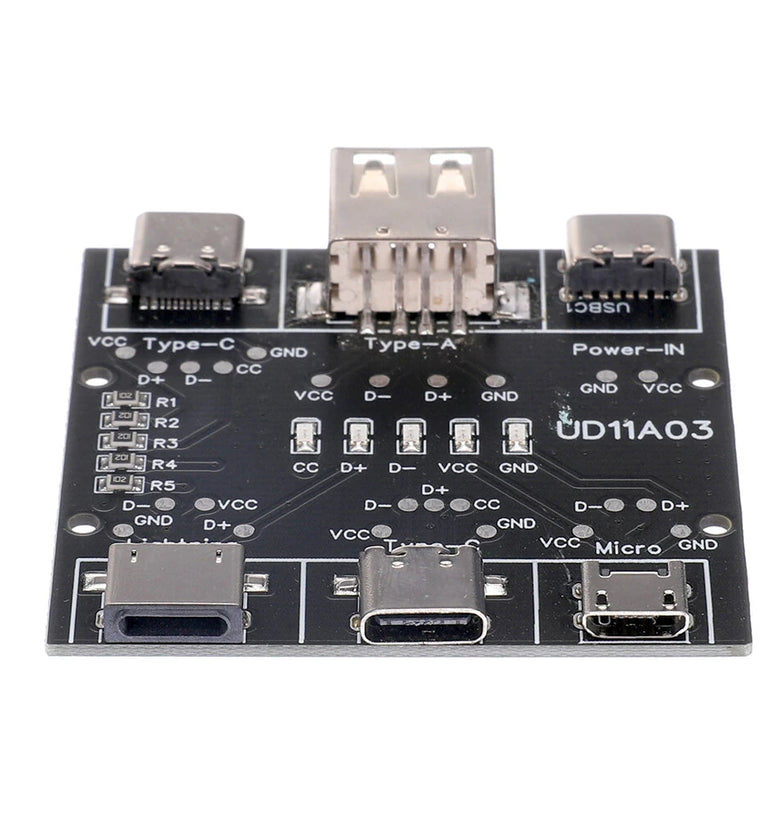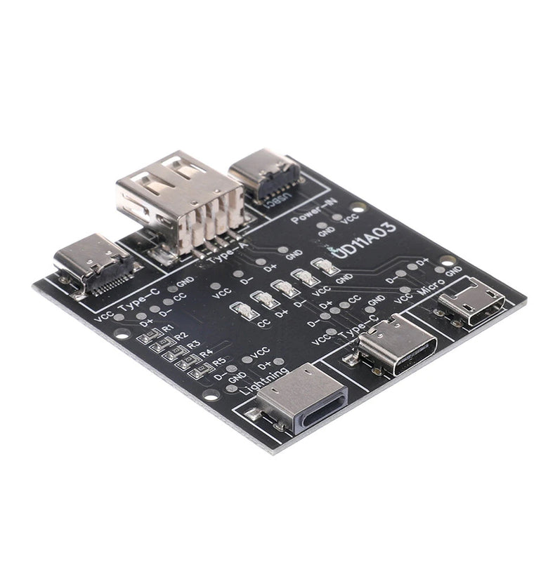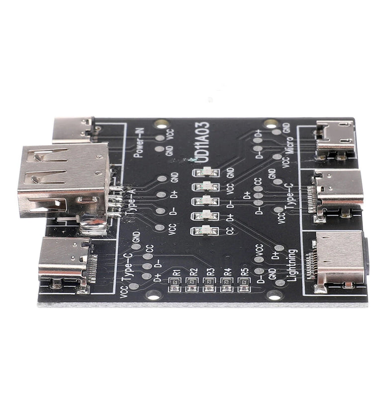 3. Type-c to Type-c data cable detection, CC, D+, D-, VCC, GND indicators are on. When testing other data cables, the CC indicator does not light up.