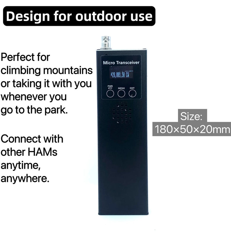 Featuring an ultra-compact body measuring just 82 x 50 x 20mm and weighing only 180 grams, this transceiver is highly portable and ideal for outdoor activities like mountaineering.