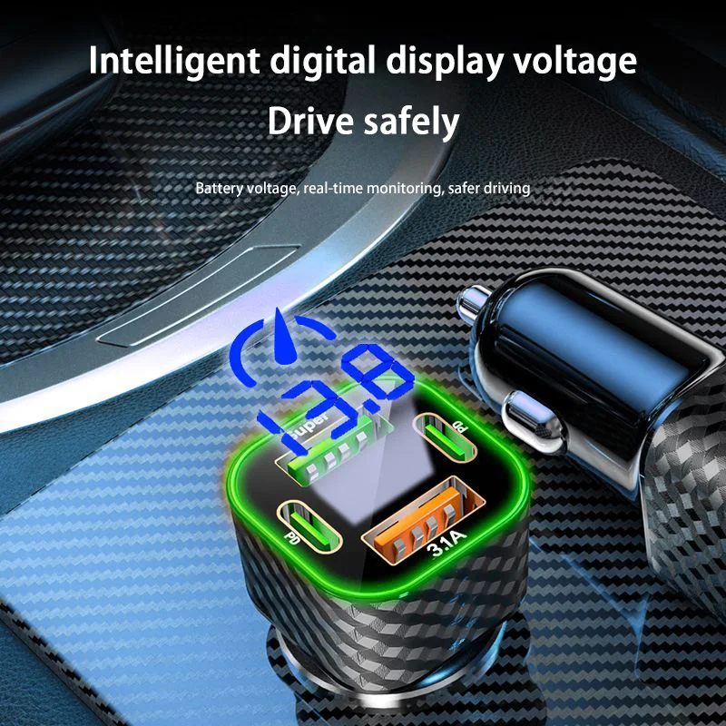 3. [Digital display]: This car charger has a digital display function that can display the input voltage, provide you with real-time information on the status of the power supply, and help monitor the charging process.