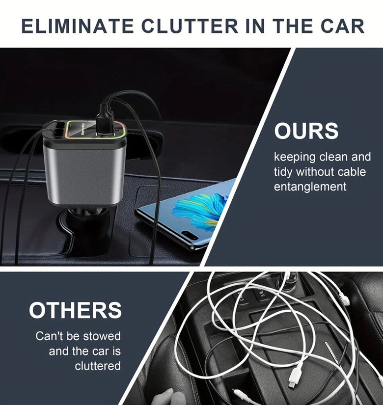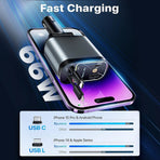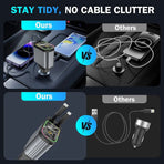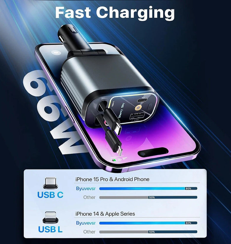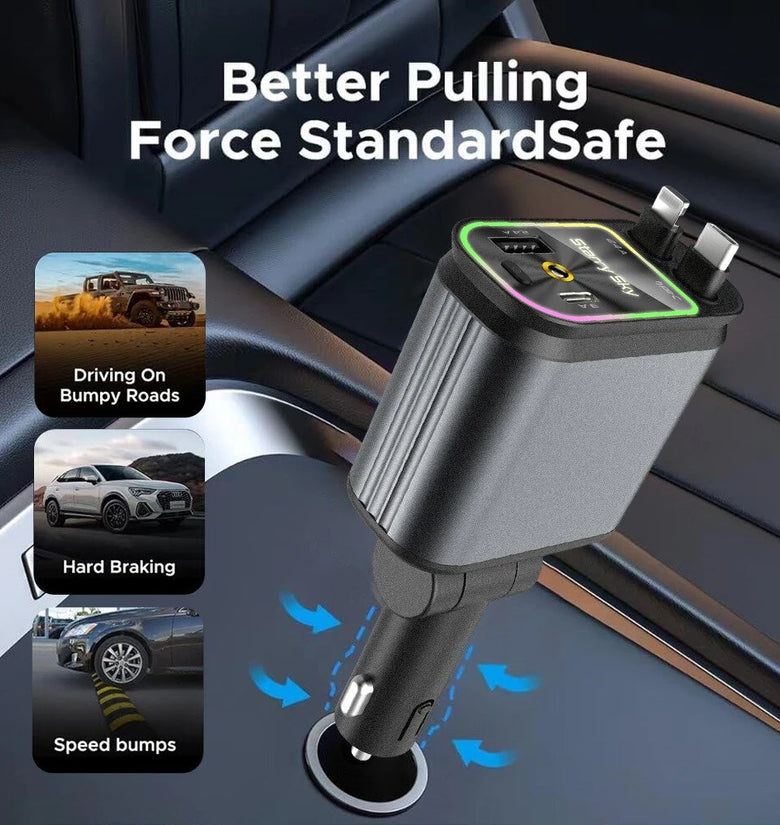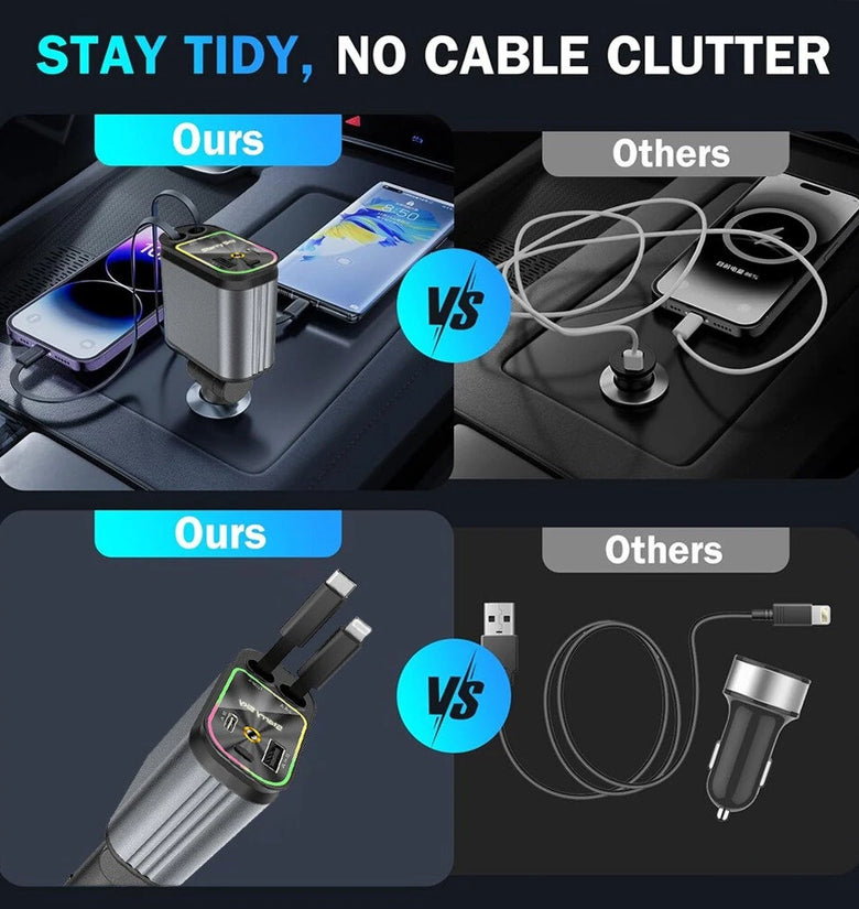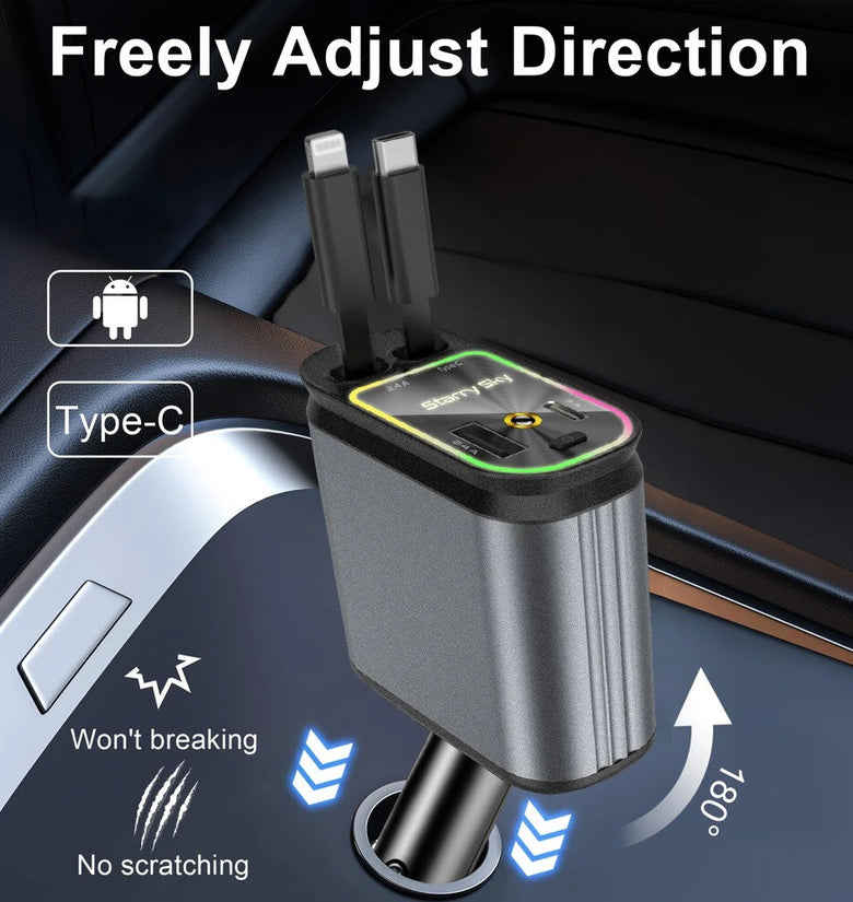 - Retractable Cable Design: The built-in retractable cable extends up to 80cm, allowing flexibility and convenience. Simply pull out or retract the cable to your desired length, avoiding any untidy wires in your car.
