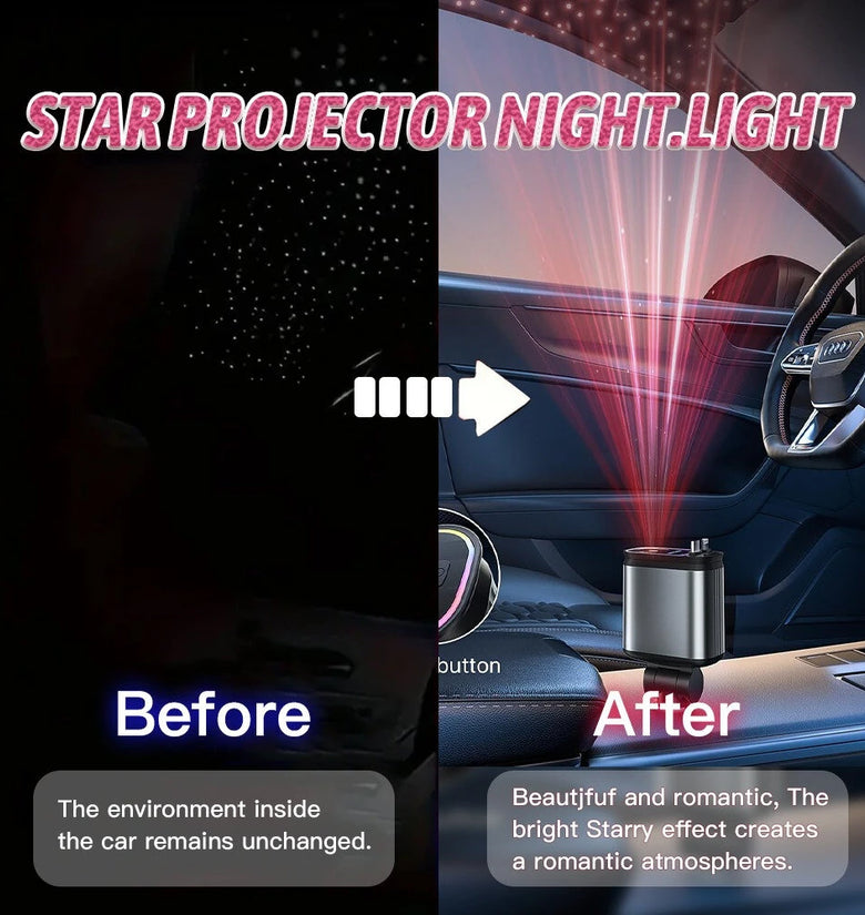 - Starry Sky Projector Night Light: Transform your car's atmosphere with an integrated starry sky projector. Create a romantic and pleasing environment with the push of a button, perfect for night drives or impressing your passengers.