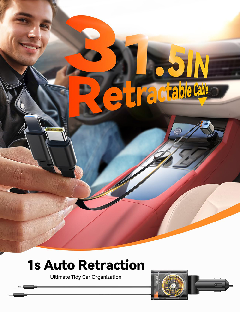 Built with user-centered design, this retractable car charger eliminates tangled cables and adapts to the real needs of diverse drivers. Its robust reliability ensures enhanced charging performance for long-term use.