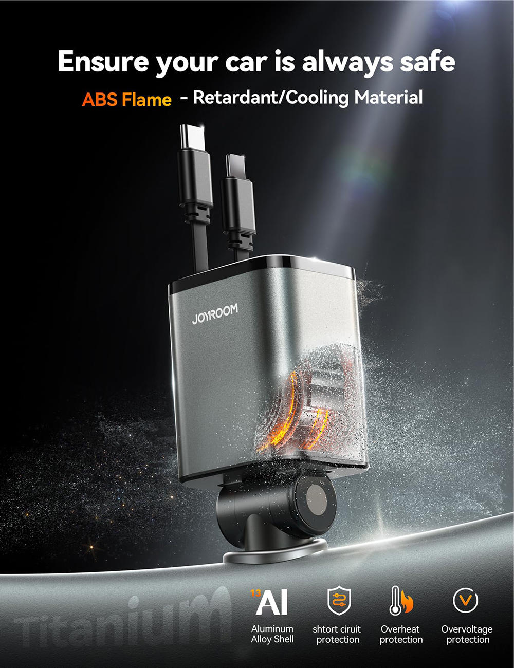 The 180° rotatable plug allows you to securely adjust the charger in narrow spaces or challenging positions. Whether you're driving on uneven or rugged terrains, it guarantees stable power delivery for uninterrupted charging throughout your journey.