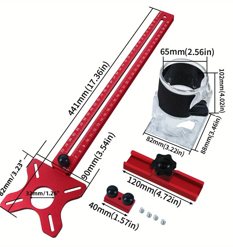• 4 in 1 Router Milling Groove Bracket Cabinet Hardware Jig Aluminum Router Circle Cutting Jig Punch-Router Milling Groove Bracket