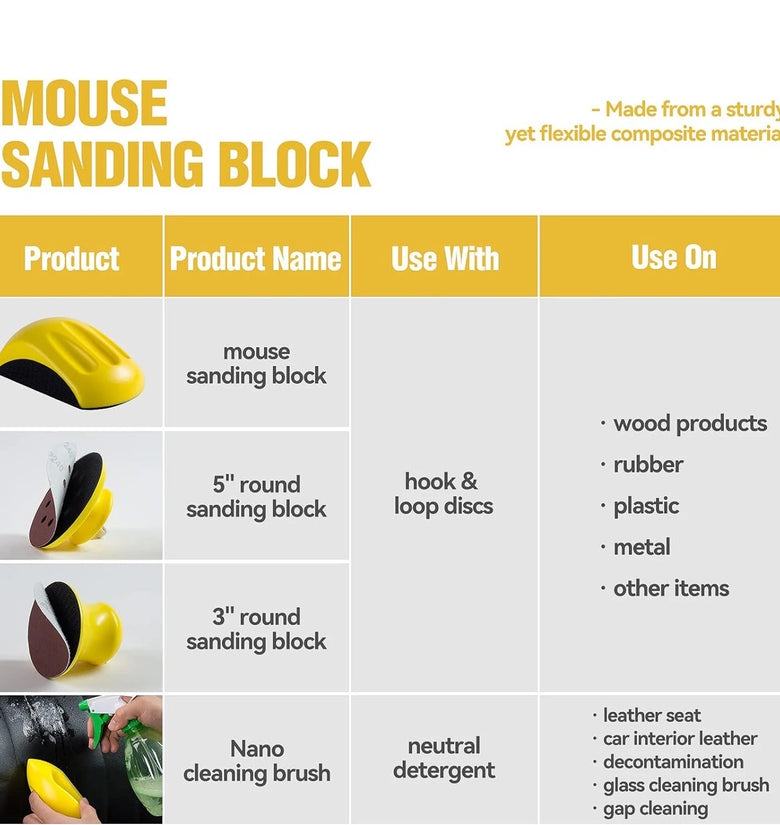 • 4 PCS 5 Inch Round Hand Sanding Blocks + Mouse Hook and Loop Sanding Blocks Ideal for Wood Furniture Restoration and Home Crafts