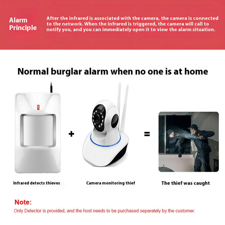 This infrared detector utilizes advanced 433MHz wireless technology to provide stable and long-distance communication. It ensures seamless connectivity without the need for additional wiring, making installation swift and unobtrusive.