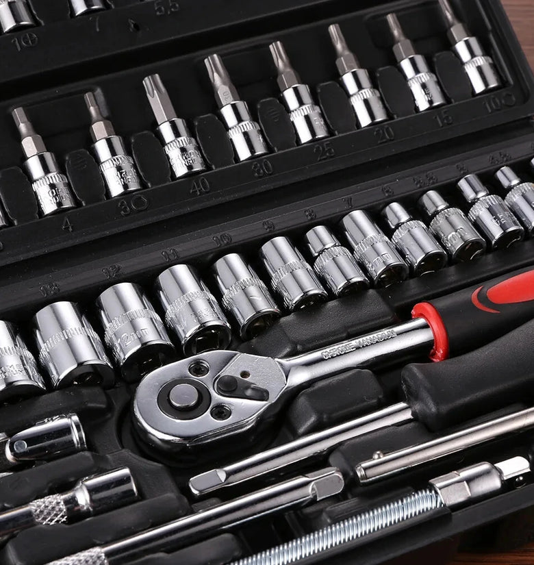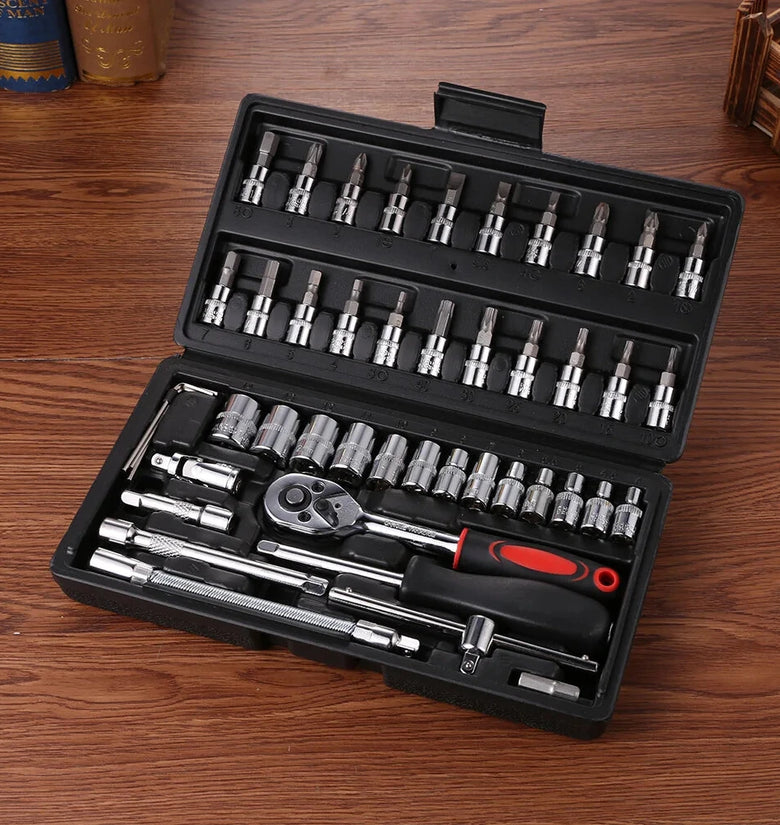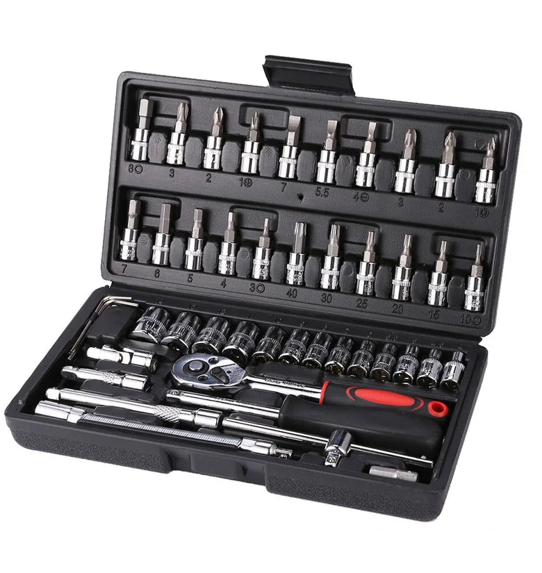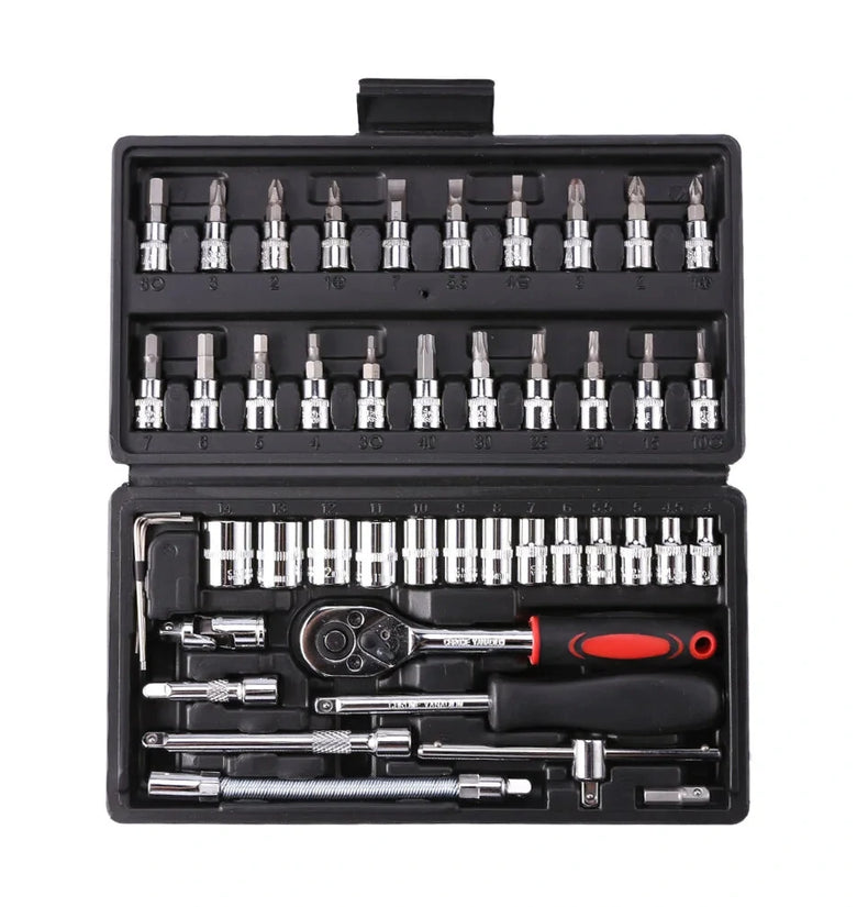 • 46Pcs Socket Wrench Set Combo Tool Auto Repair Screwdriver Combination 1/4 Inch Ratchet Wrench Set with Metric Drill Bit Socket Extension Bar for Auto Repair Engine Maintenance