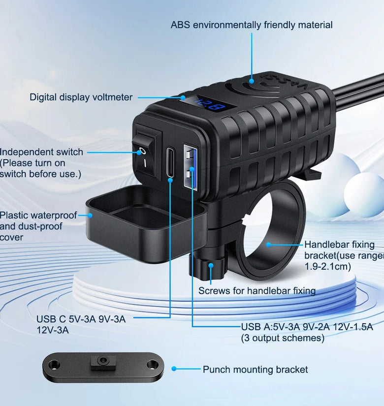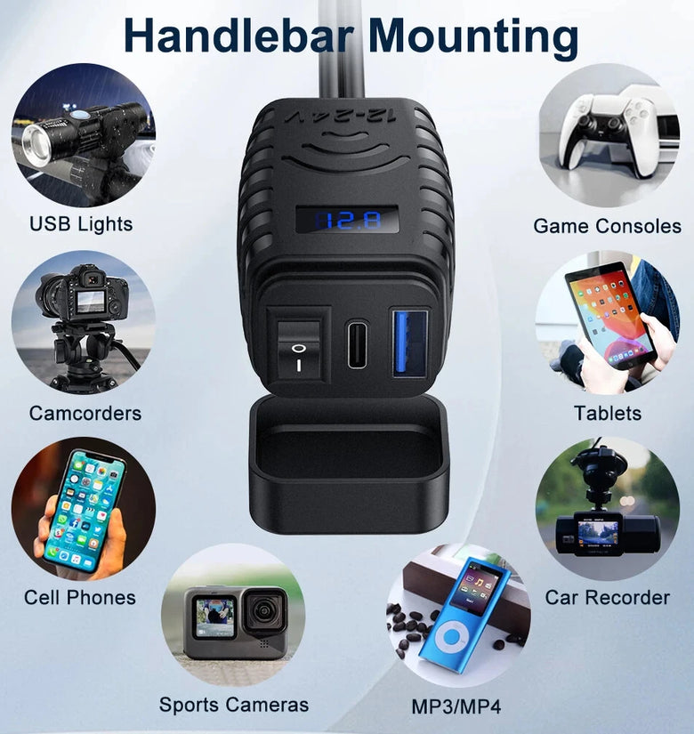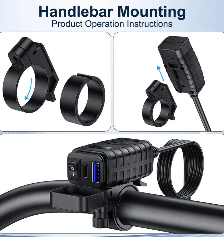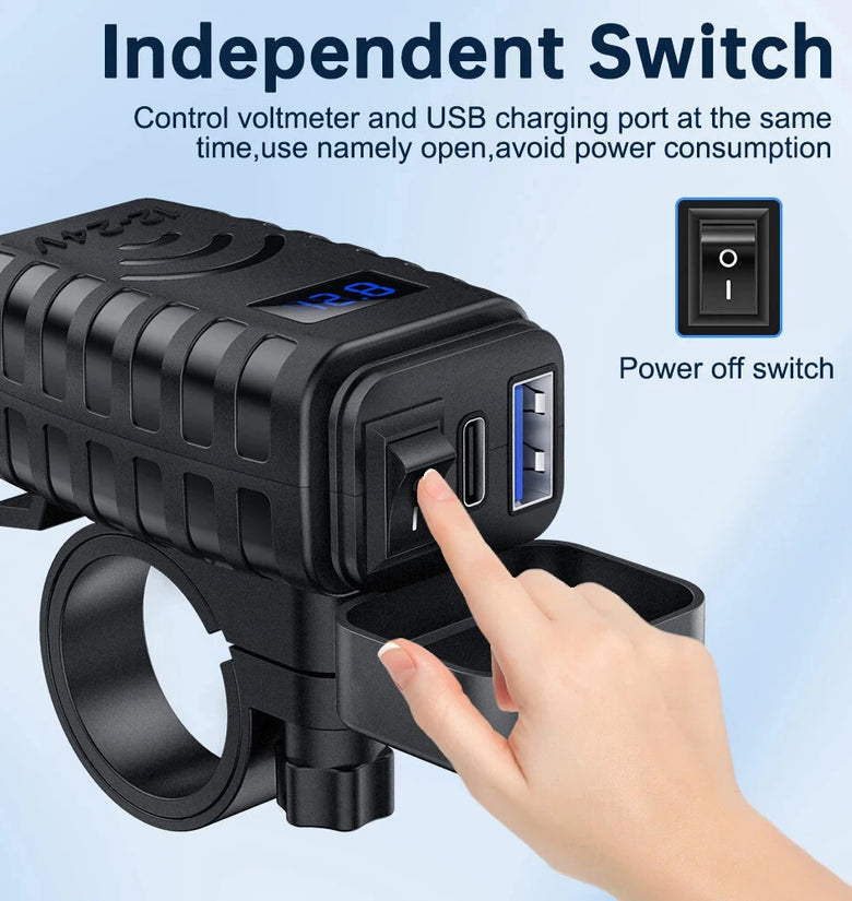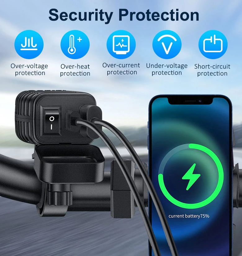 - Efficient Dual-Port Fast Charging: Equipped with a 48W USB-A (Quick Charge 3.0) and USB-C port, this motorcycle charger allows you to power up two devices simultaneously. The advanced fast charging technology ensures your devices are charged quickly, keeping you connected and powered throughout your ride without any delay.