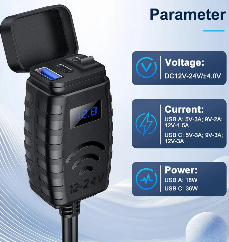 - Wide Compatibility: With an input voltage range of 12V to 24V, this USB charger adjusts the output voltage (5V/3A, 9V/3A, 12V/3A) based on your device’s requirements. It is fully compatible with a wide range of USB interface electronic products, making it suitable for charging smartphones, GPS devices, cameras, and more.