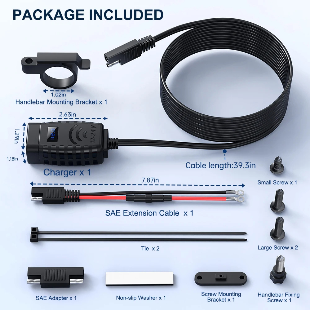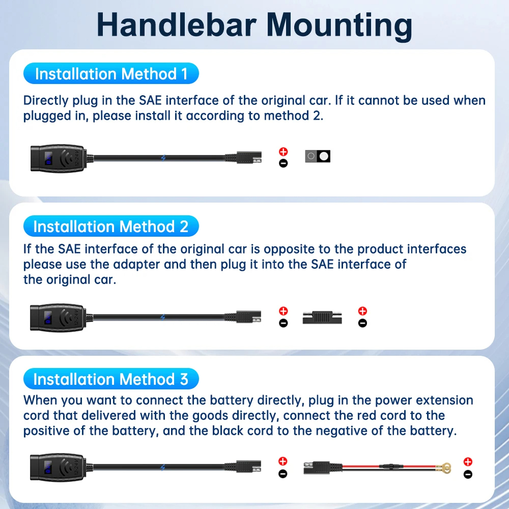 - Versatile SAE Interface: Designed with a convenient SAE interface, this charger can be easily connected to the original SAE interface on your motorcycle. It comes with a 10A fused SAE loop-end harness that enables direct battery connection, simplifying the installation process and ensuring a robust connection.