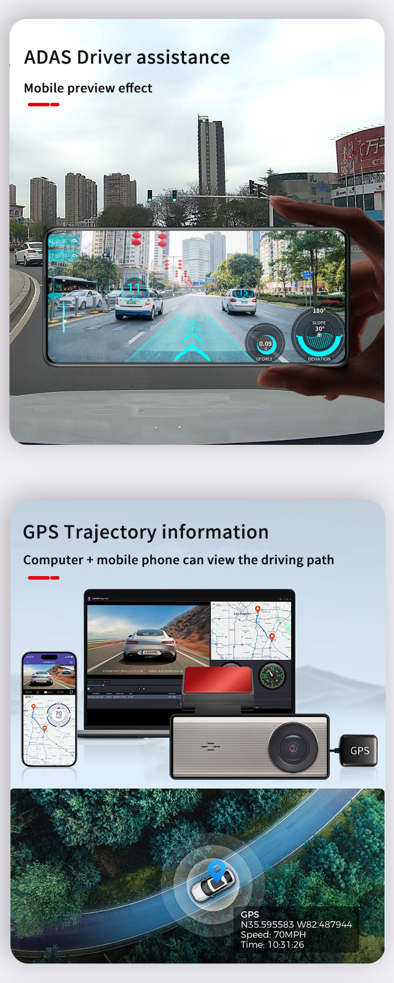 • 4k+1k Dual Dash Cam 3.16 IPS Screen Front & Rear HD Dual Recording Screen GPS Driving Recorder WiFi Connection Night Vision