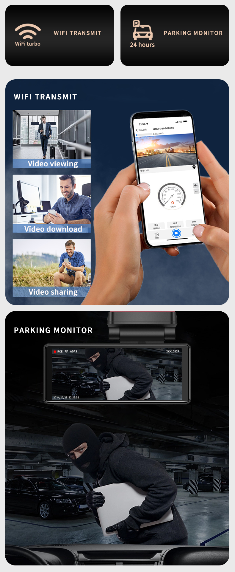 Enhance your driving safety with the integrated ADAS.Advantage from real-time lane departure warnings, collision alerts, and other driver assistance features, all aimed at ensuring a safer driving experience.
