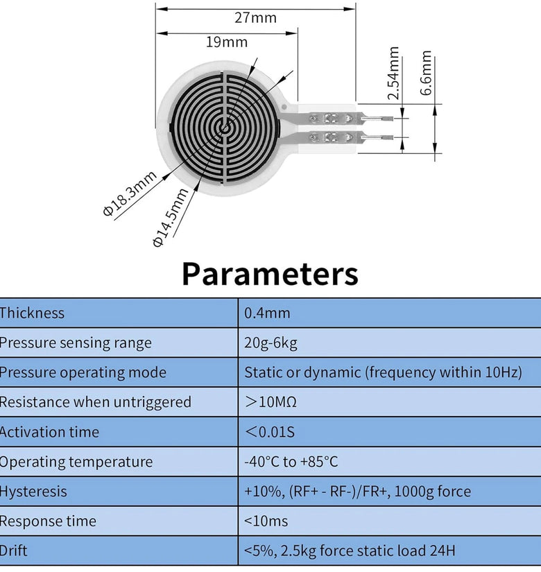 • 4pcs RP-C10-ST RP-C18.3-ST Flexible Thin Film Pressure Sensor High Sensitivity Force Sensitive Resistor for Arduino Smart Home Industrial Automation