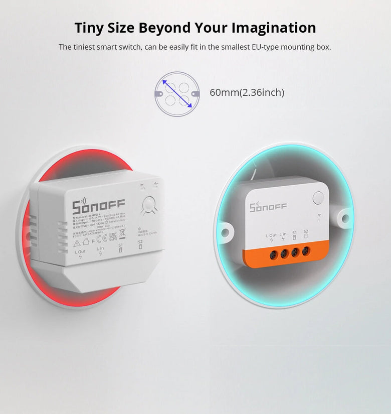 【Super Tiny Size】The tiniest Zigbe smart switch can be easily fit in the smallest EU-type/86 type/120 type mounting box. 【Support External Switch】 Work with different type of external switches to control your devices, like rocker light switch, push button wall switch.etc, no neutral wire required for easy installation & simple use.