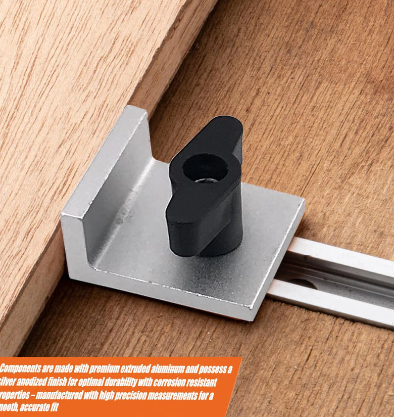 Designed to fit most standard T-track systems, these stop blocks ensure seamless integration across router tables, CNC routing setups, and woodworking benches.