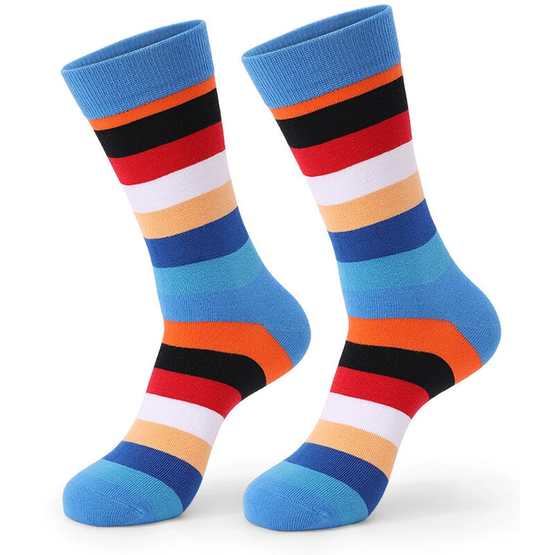 • 5 Pairs Men's Cotton Stripe Socks Funny Crew Bright Color Block Personality Mid Long Tube Skateboard Socks Unisex